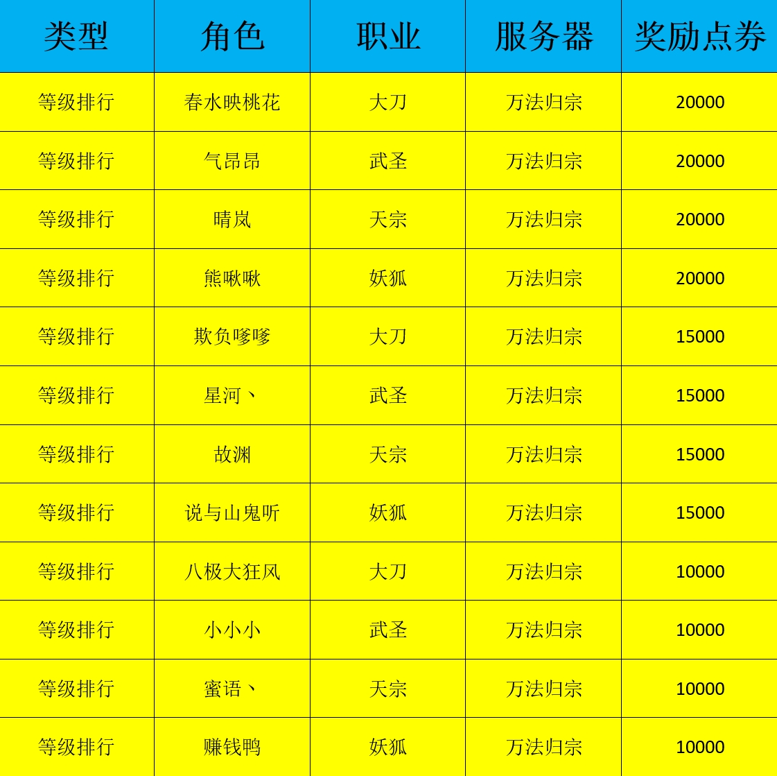 详细排名名单如下(按照2025年11月2日下午15点数据,等级相同按经验值排名,满级满经验者按照时间先后排名):